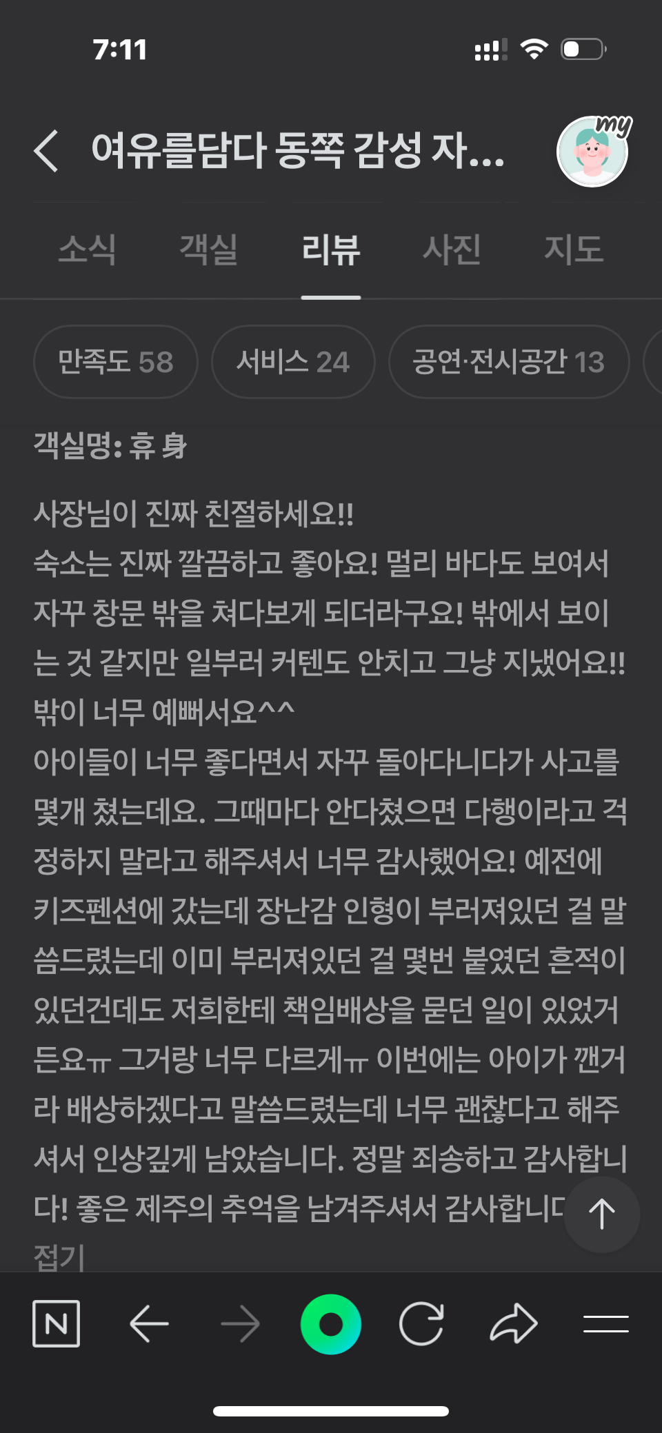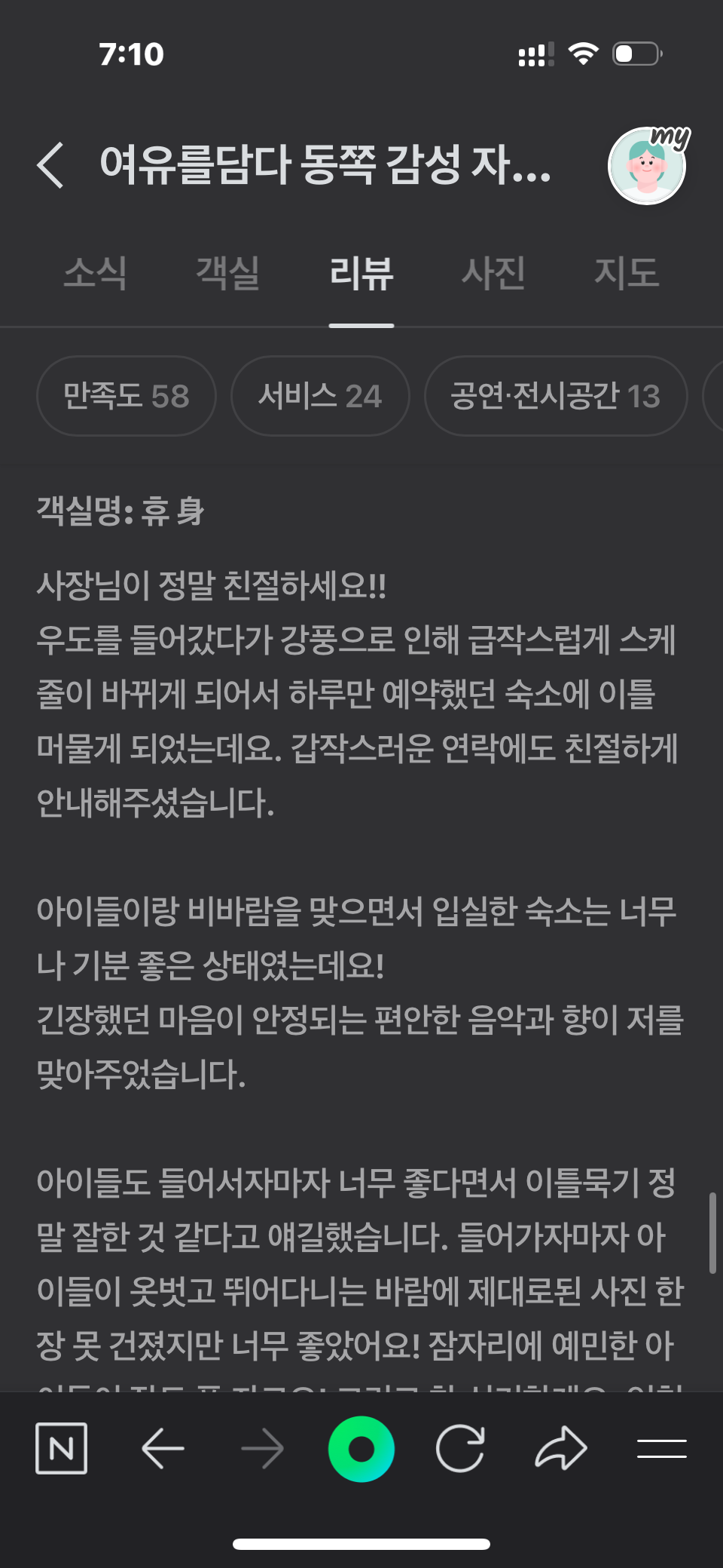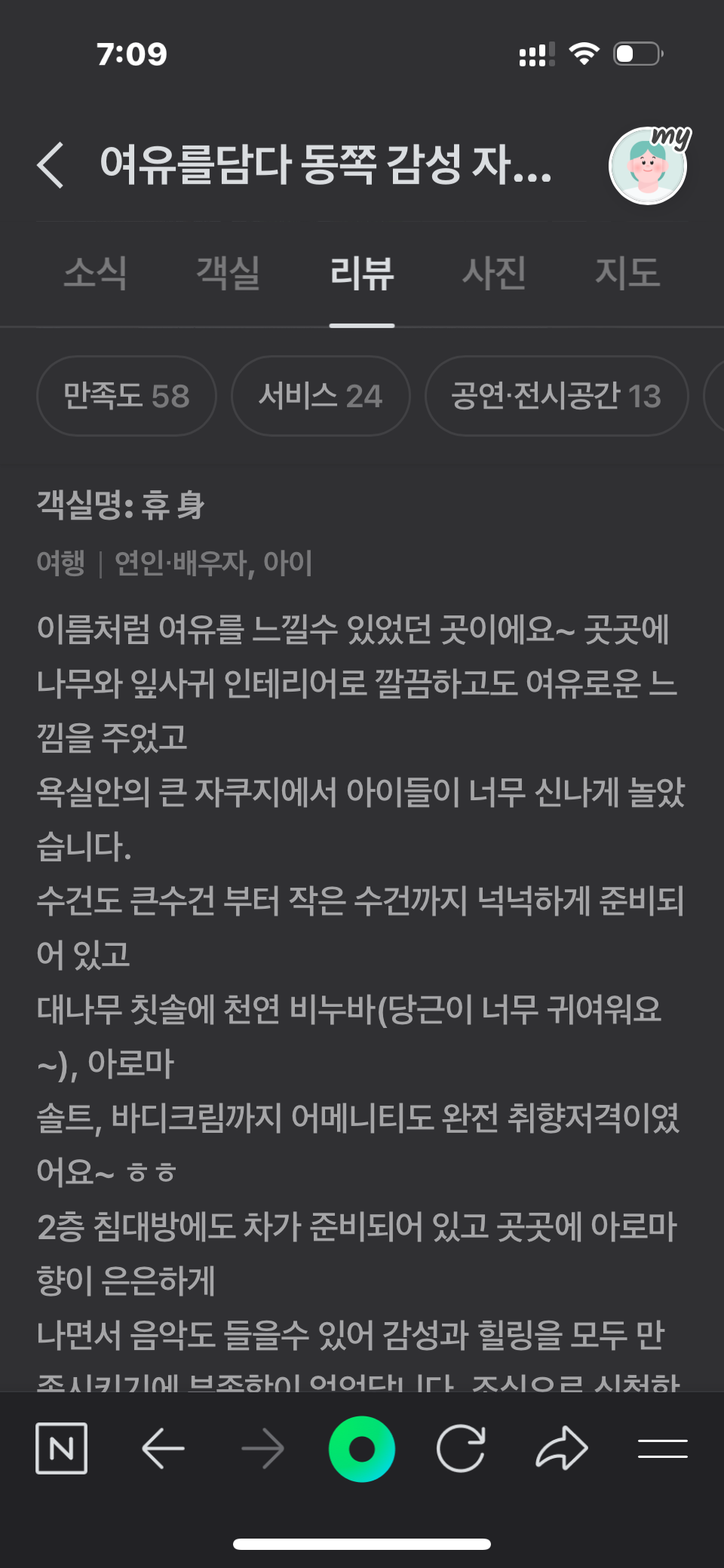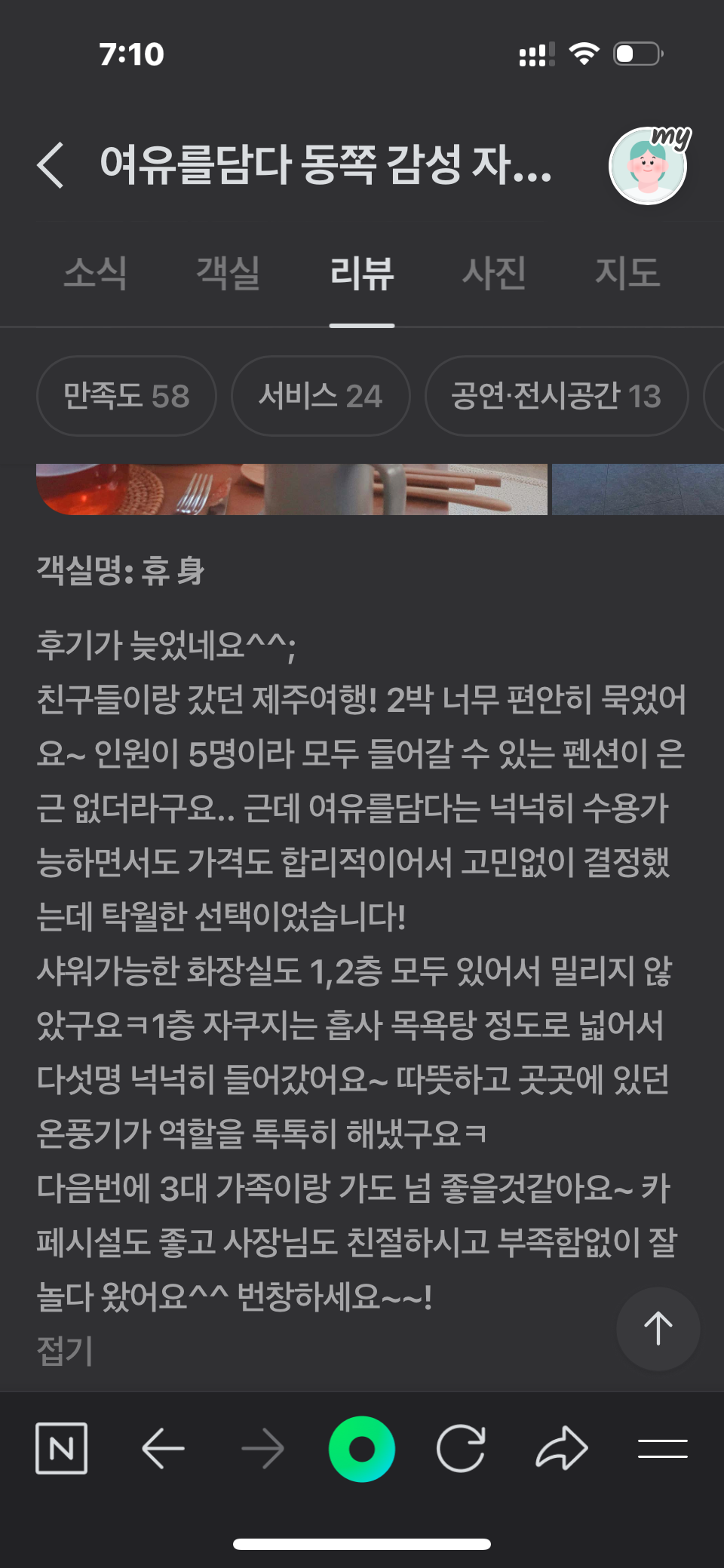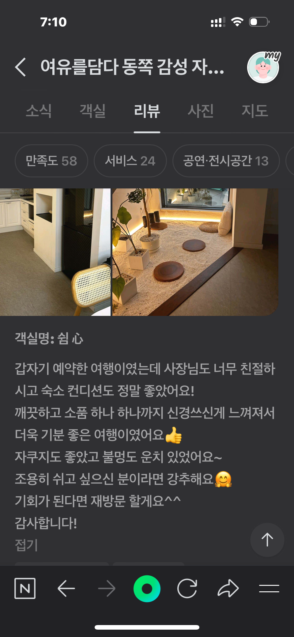 여유를 담다는 리뷰로 검증되었습니다. 실제 투숙 고객이 남긴 생생한 후기를 확인해보세요.