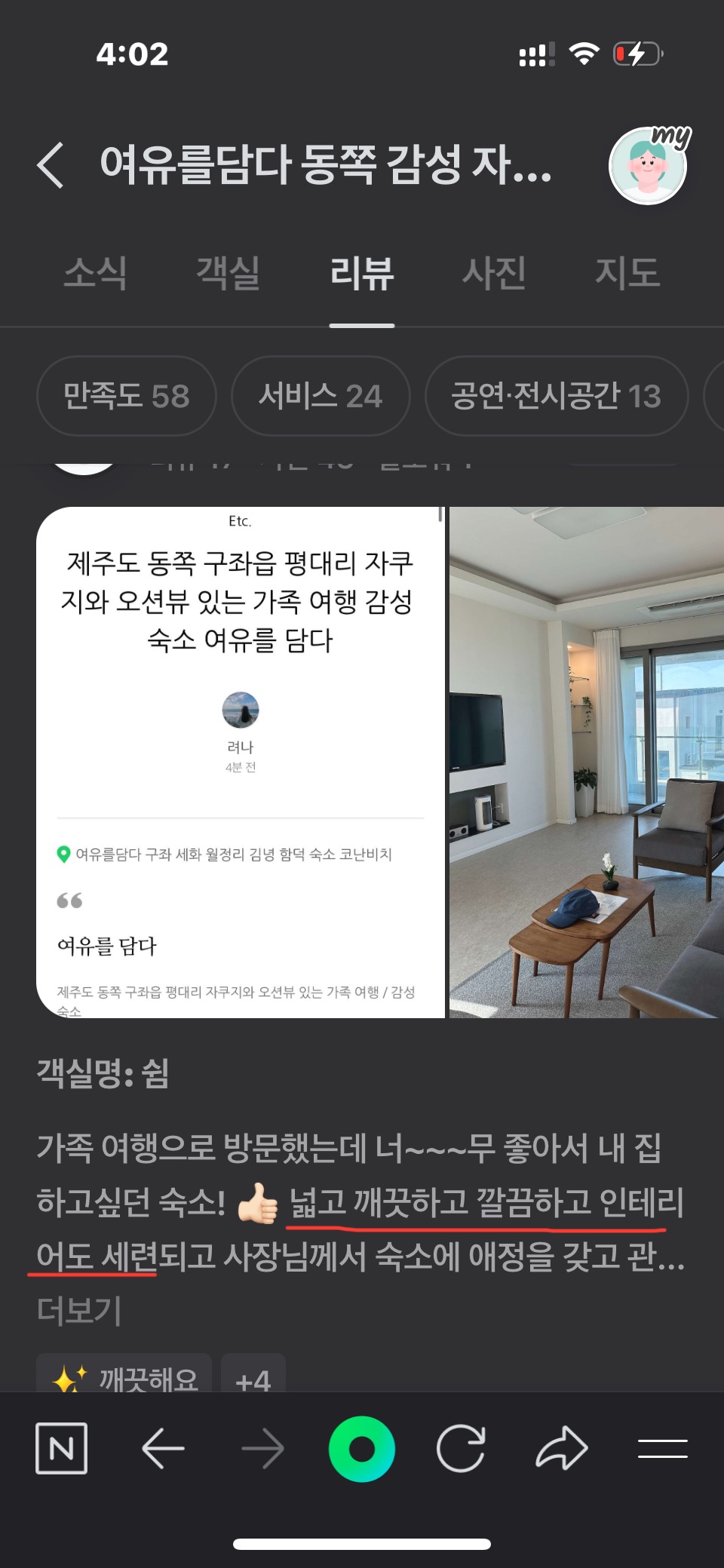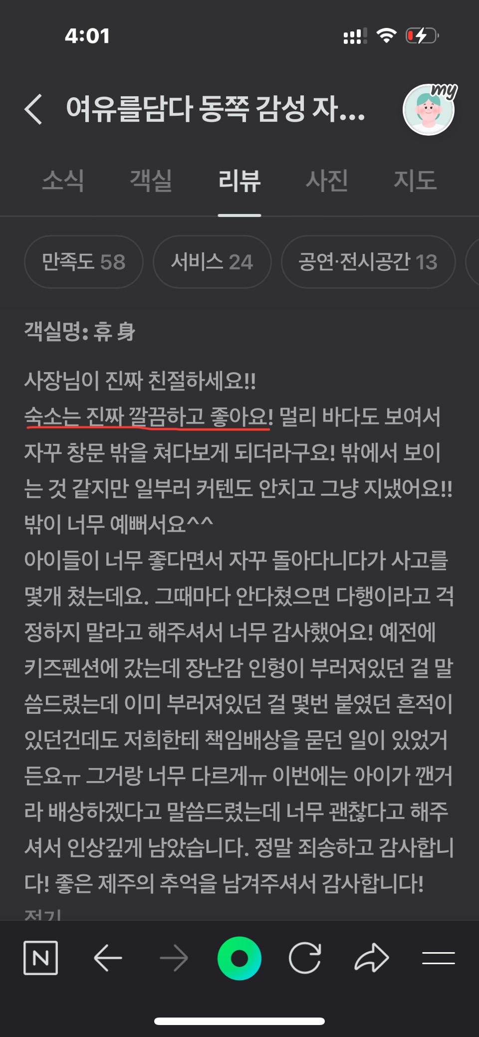 가족 여행으로 깨끗한 사진을 믿고 예약한 숙소의 청결상태가 미흡하여